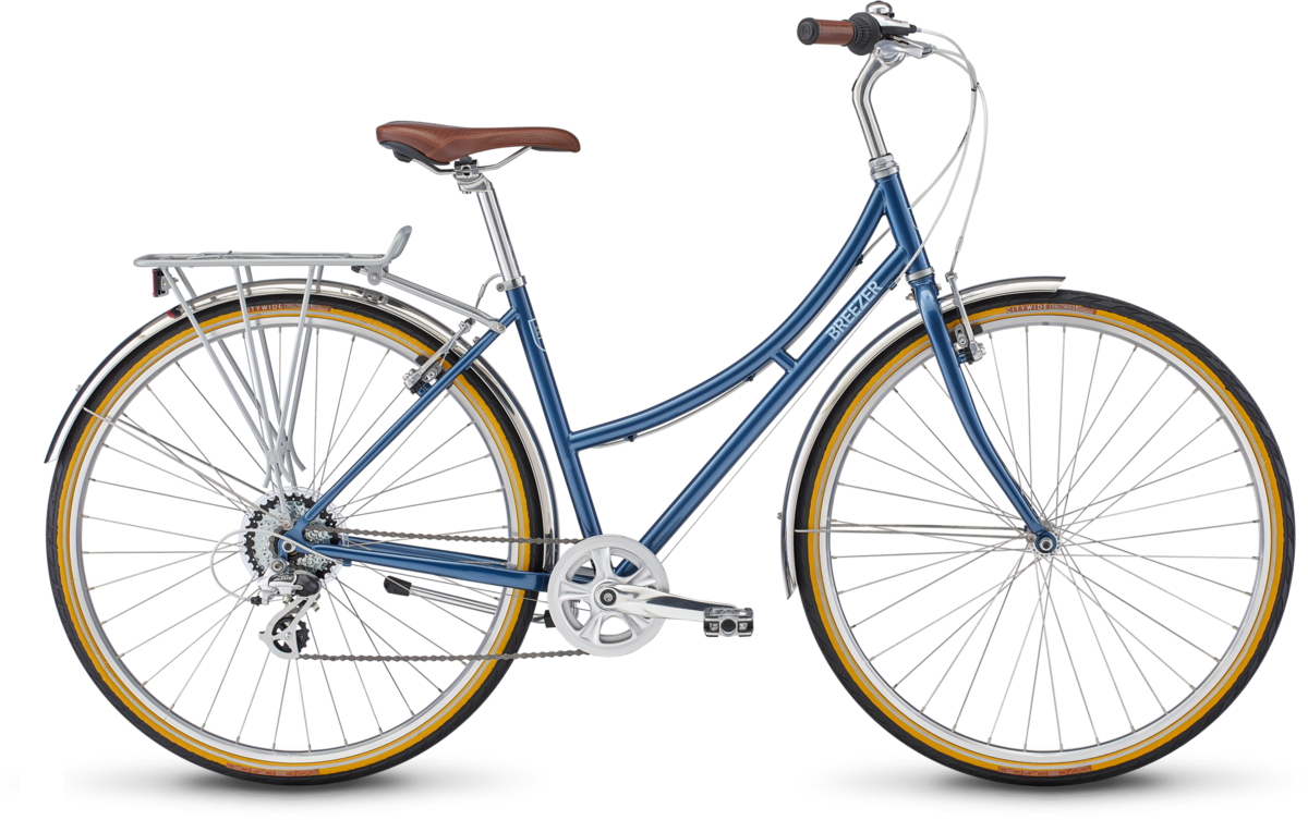 | Accessories & Extras | Steel fenders, stainless hardware, Breezer tubular aluminum rear rack w/ spring clip, chainguard, kickstand, bell |